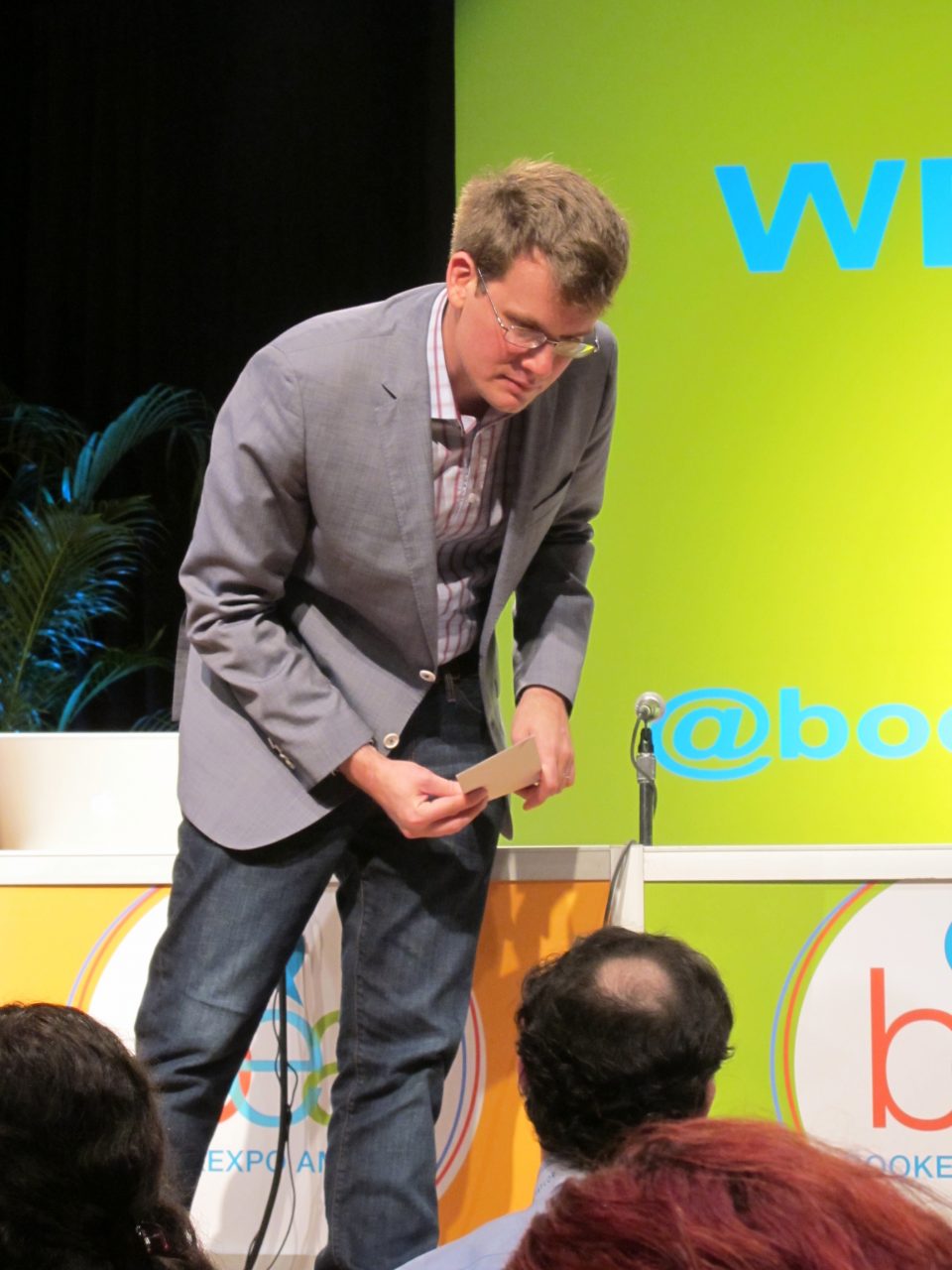Chris Colfer, John Green (the Justin Bieber of the YA world *snort*), Lois Lowry and Kadir Nelson–Each one of these three legends was amazing. Lois Lowry received a standing ovation that was well deserved. You can watch the a live stream replay of the breakfast here…Live Stream Book Expo America