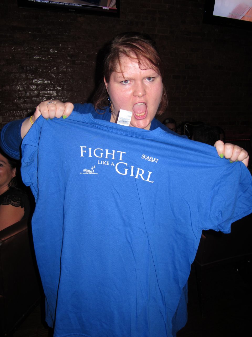 One of my favorite BEA pics! A.C. Gaughen and her new FIGHT LIKE A GIRL T-shirts for a GLOW fundraiser. Great cause–I am so getting one! If you’re interested in buying one and supporting GLOW–leave your contact info in the comments and I’ll make sure that A. C. gets it.