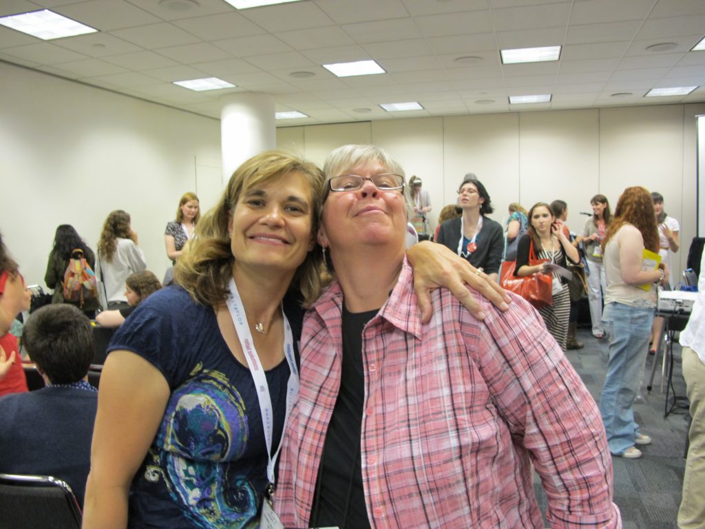 One of my favorite BEA pics! A.C. Gaughen and her new FIGHT LIKE A GIRL T-shirts for a GLOW fundraiser. Great cause–I am so getting one! If you’re interested in buying one and supporting GLOW–leave your contact info in the comments and I’ll make sure that A. C. gets it.