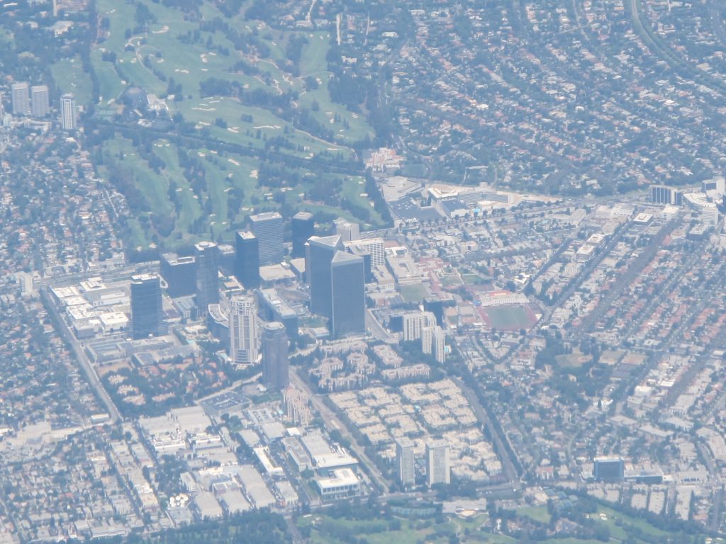 Can you spot the Hyatt Regency Century Plaza? It’s the low building with a curved shape next to the white tower.