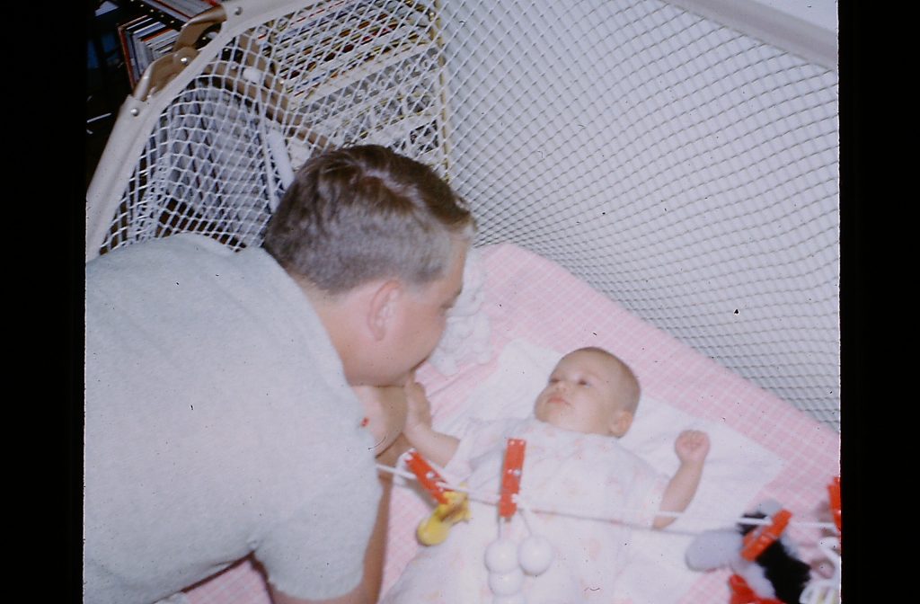 I imagine he would have been looking at me a lot like this on October 30th. Notice the makeshift mobile with clothes pins and toys…my parents rock!