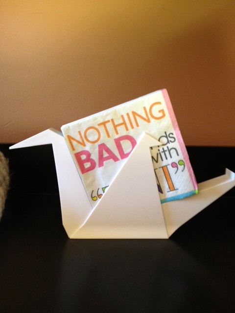Best part is that the crane is a napkin holder for the Tini napkins!!!! They will reside in my new office, that still has one, sort-of-big pile in the corner preventing me from showing it off to you. Soon or never but whatever. LOL!